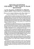 Recollections 1920 Dalby — 1921 Travel to North Queensland